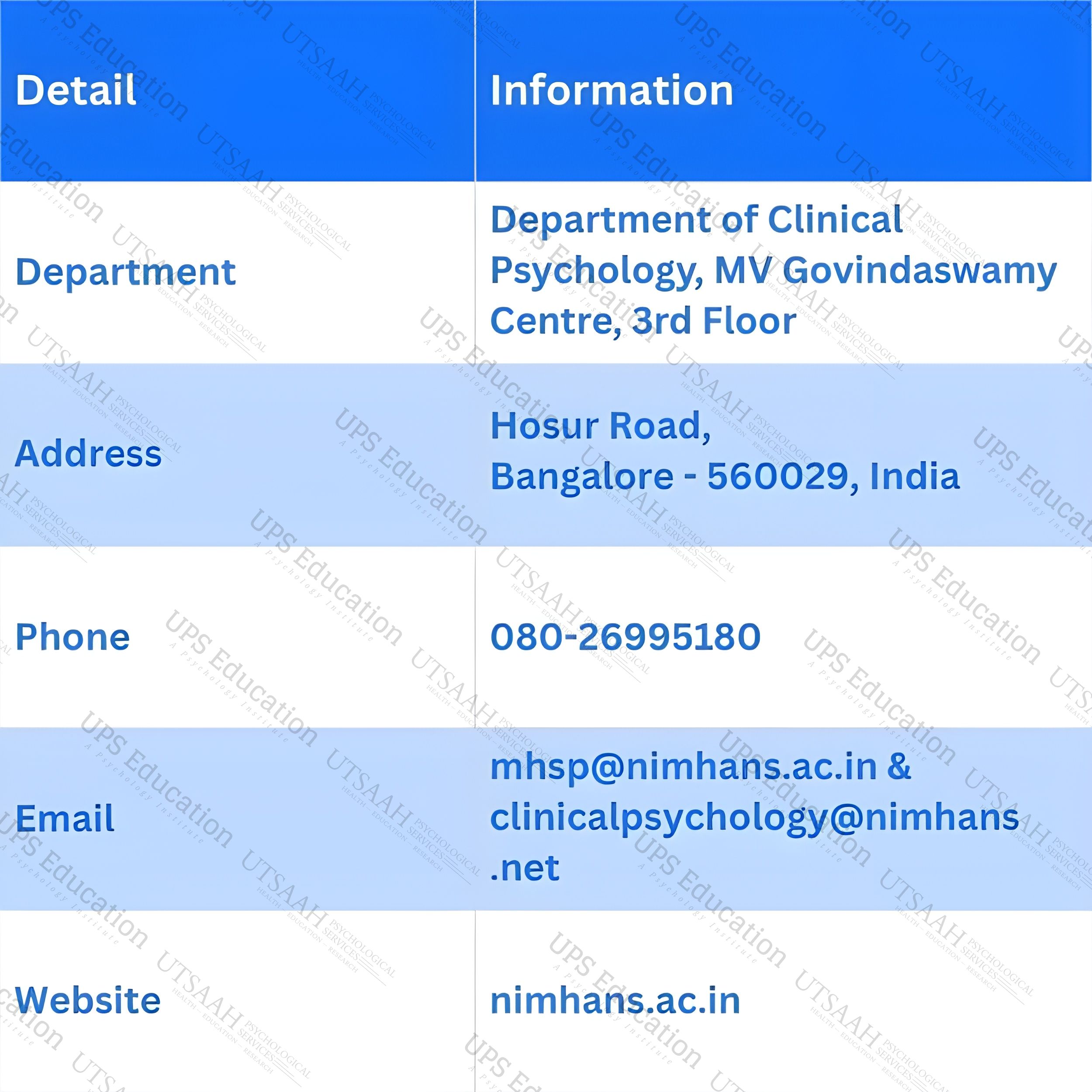National Institute of Mental Health and Neurosciences (NIMHANS), Bengaluru, is one of India’s premier institutions for mental health, neurosciences, and behavioural sciences. Recognized globally for its excellence in academics, advanced clinical services, and pioneering research, NIMHANS holds a unique position as the country’s leading center for psychological and neuropsychiatric training.