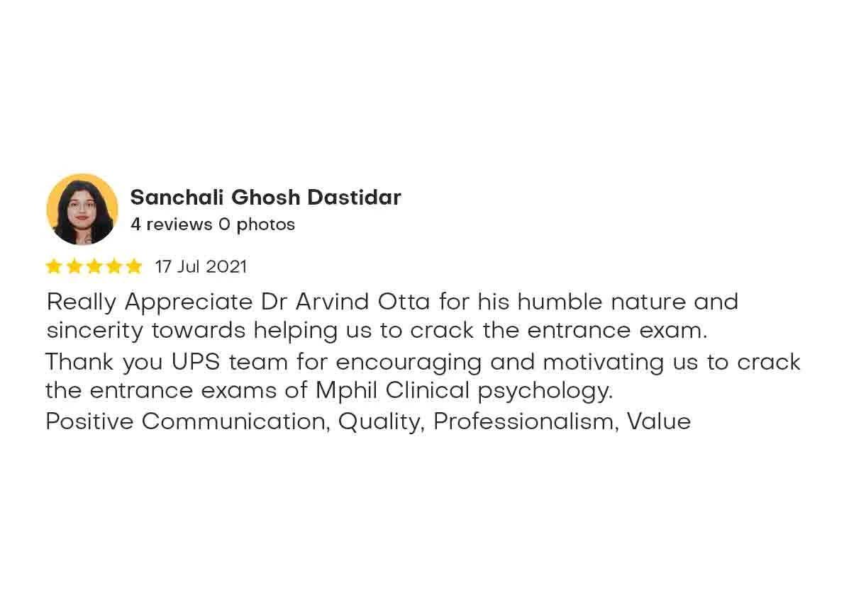 Thank you UPS team for encouraging and motivating us to crack the entrance exams of Mphil Clinical psychology.