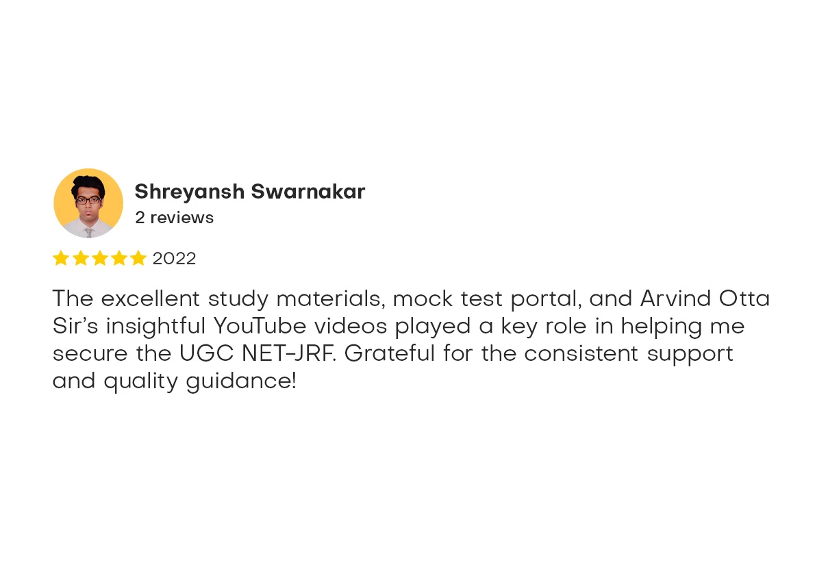 The excellent study materials, mock test portal, and Arvind Otta Sir’s insightful YouTube videos played a key role in helping me secure the UGC NET-JRF. Grateful for the consistent support and quality guidance!