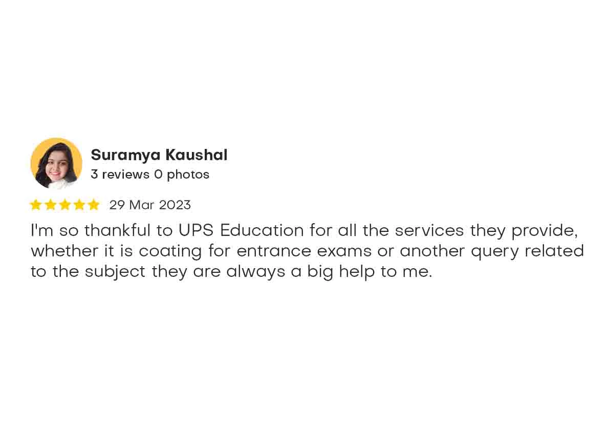 I'm so thankful to UPS Education for all the services they provide, whether it is coating for entrance exams or another query related to the subject they are always a big help to me.