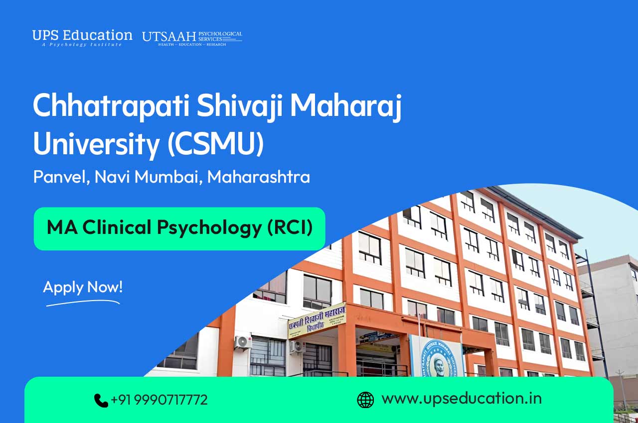 Chhatrapati Shivaji Maharaj University (CSMU), Panvel, Navi Mumbai, has released the application forms for its MA Clinical Psychology (RCI) (formerly MPhil Clinical Psychology) program for the 2025-26 academic session. The Rehabilitation Council of India recognizes its program for meeting the regulatory standards for professional training in clinical psychology.